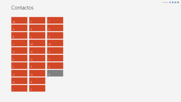 Una implementación más interesante es la que hace la aplicación de Contáctos. En ese caso cuando se utiliza el Zoom Semántico lo que vemos no es la misma pantalla pero pequeña sino que vemos una pantalla diferente que nos ayuda a saltar entre toda la lista de contactos.